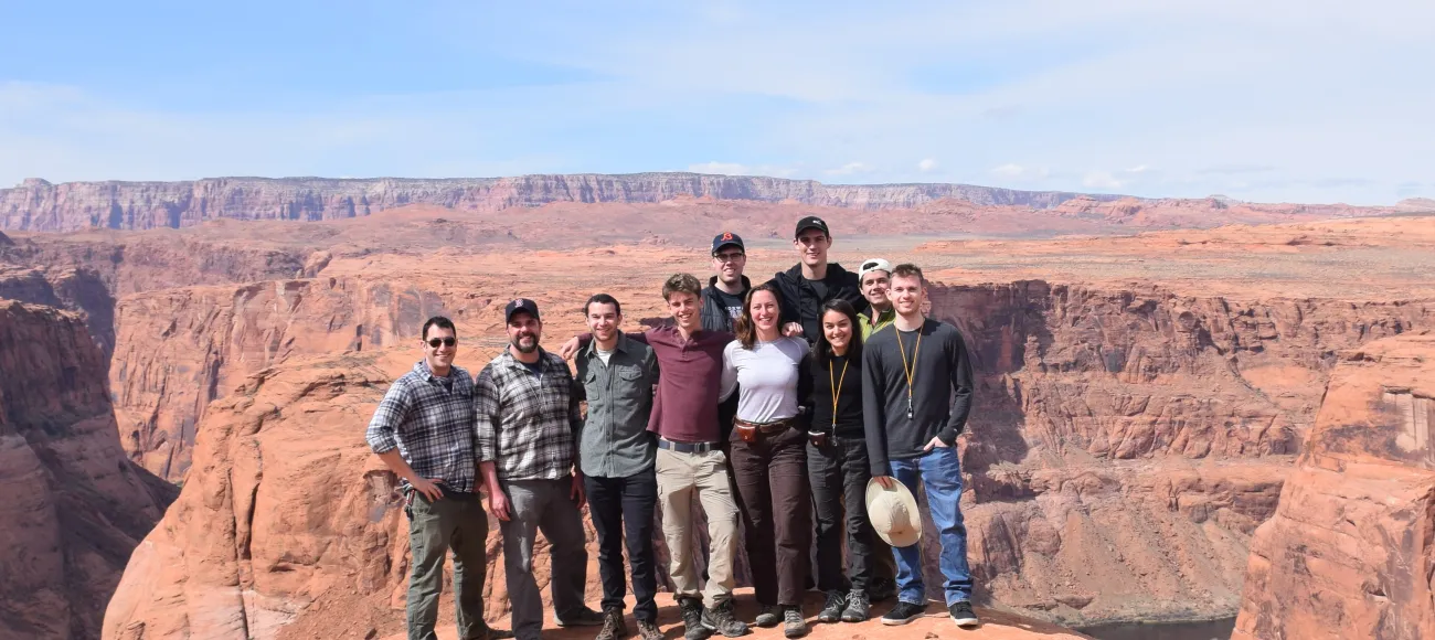 Undergraduate field geology trip at Horseshoe Bend, Arizona, an incised meander into the Colorado Plateau