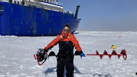 Photos, credit Lexi Arlen: 1. Arlen standing in front of a research vessel with an ice tool