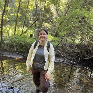 Photo, credit Jessica Brown: Brown conducting field work for the river ecology lab at UGA
