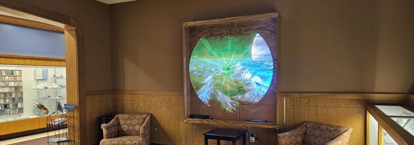 The new 3D monitor is located in an alcove across from the Grossman Mineral Museum.